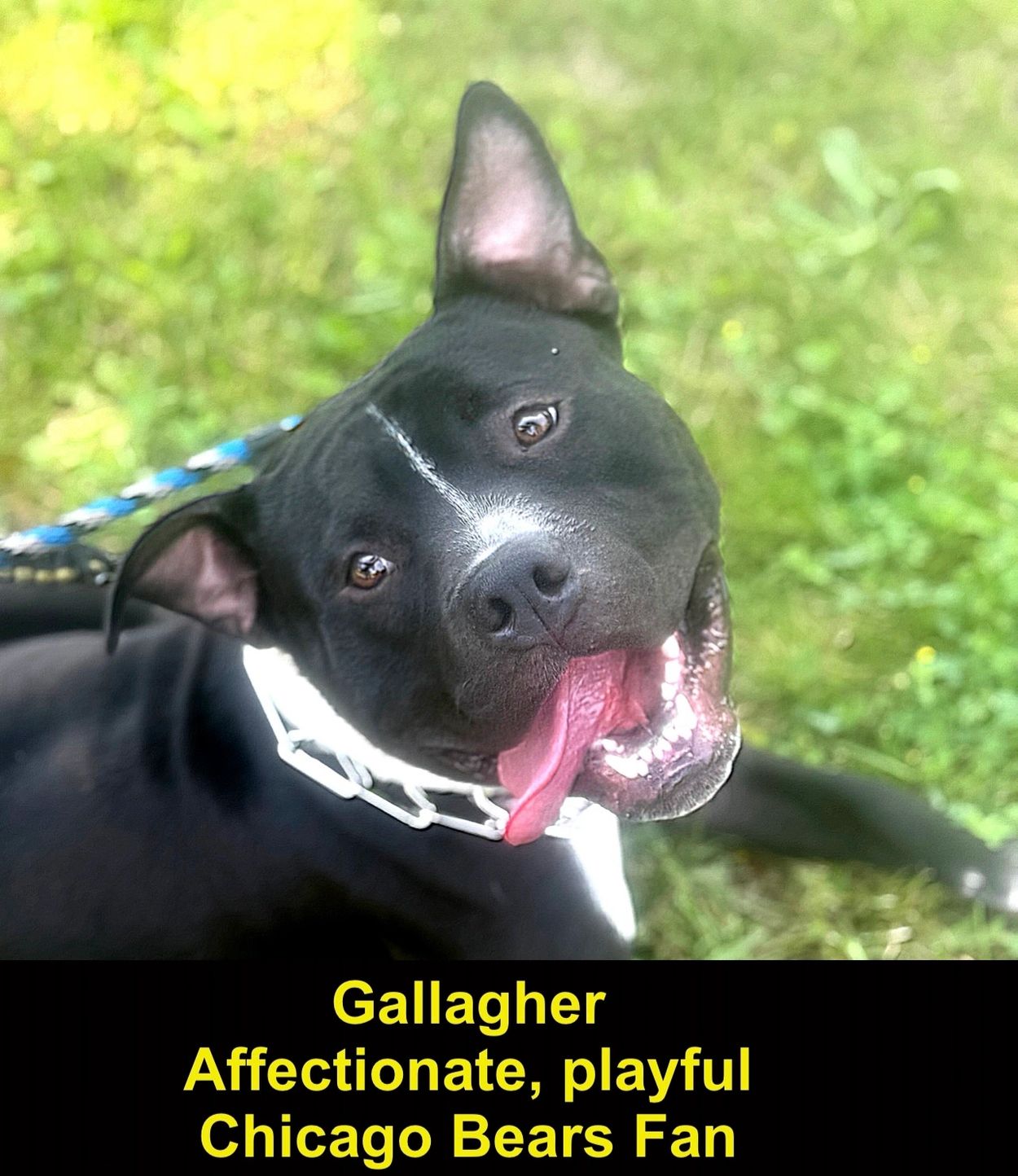 Gallagher is an affectionate, 11 month old, American Bulldog mix. He is full of moderate energy, loves to cuddle and lay on you and enjoys his walks and rolling in the gtass. he is a puppy in Motion, a Tail Wagging Commotion!