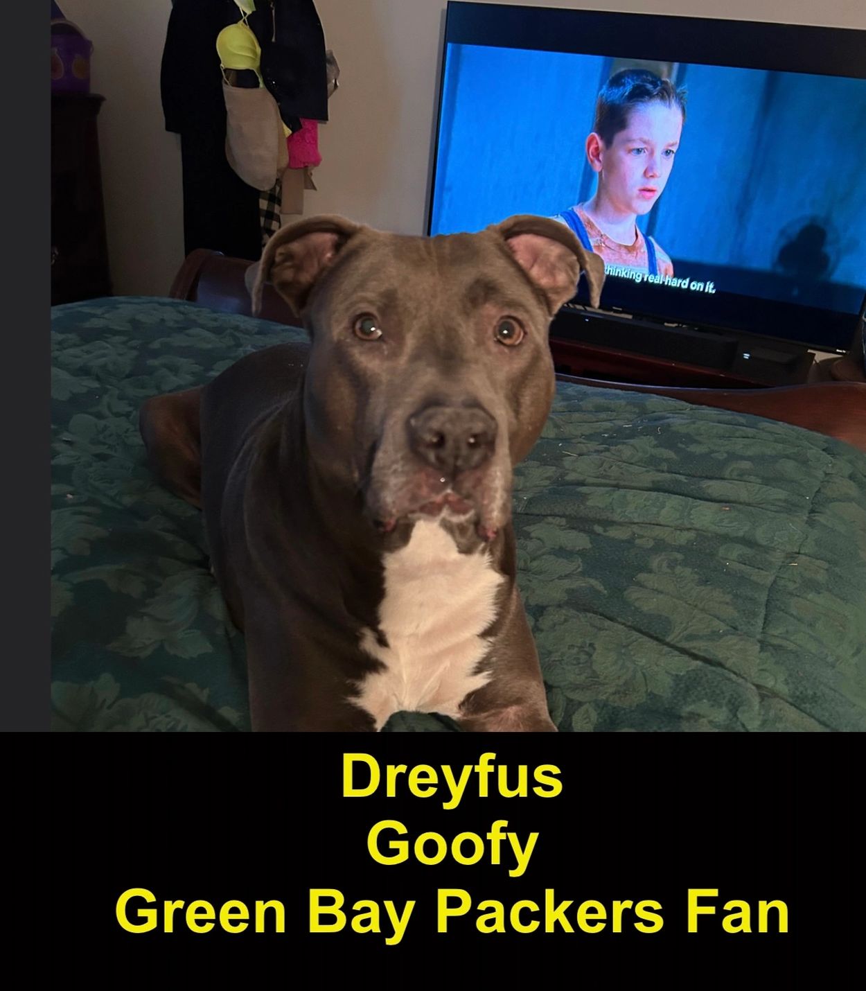 dreyfus is a silly, 6 year old American Staffordshire mix. at 75 lbs, he loves his walks, car rides and toys. Dreyfus was a pup that was dumped in a sheter becaise the people had too mnay dogs. This goofy pup loves to be near you. Are you his loving human to grant his wish of a forever home?